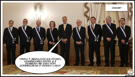 A menos de um mês de se ir embora, sem pena nem paixão, ao Cavaco deu-lhe a fúria das medalhas e foi í despensa buscar o refugo que lá tinha e desatou a condecorar í fartazana.
